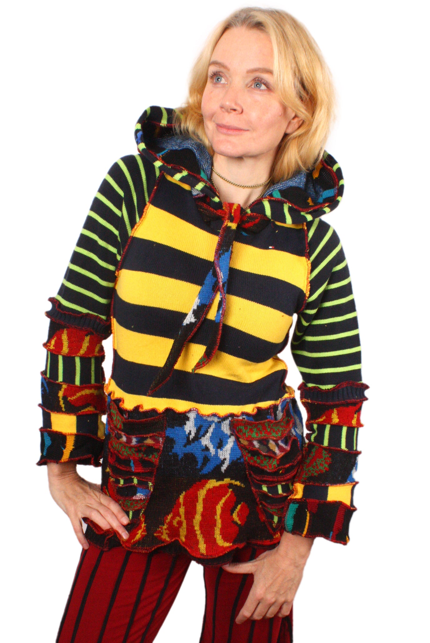 Daisy Fleabane is a riot of very bold prints including bumble-bee stripes and tropical fish mayhem. It's a combination of cotton, wool, and extra pizzazz.
