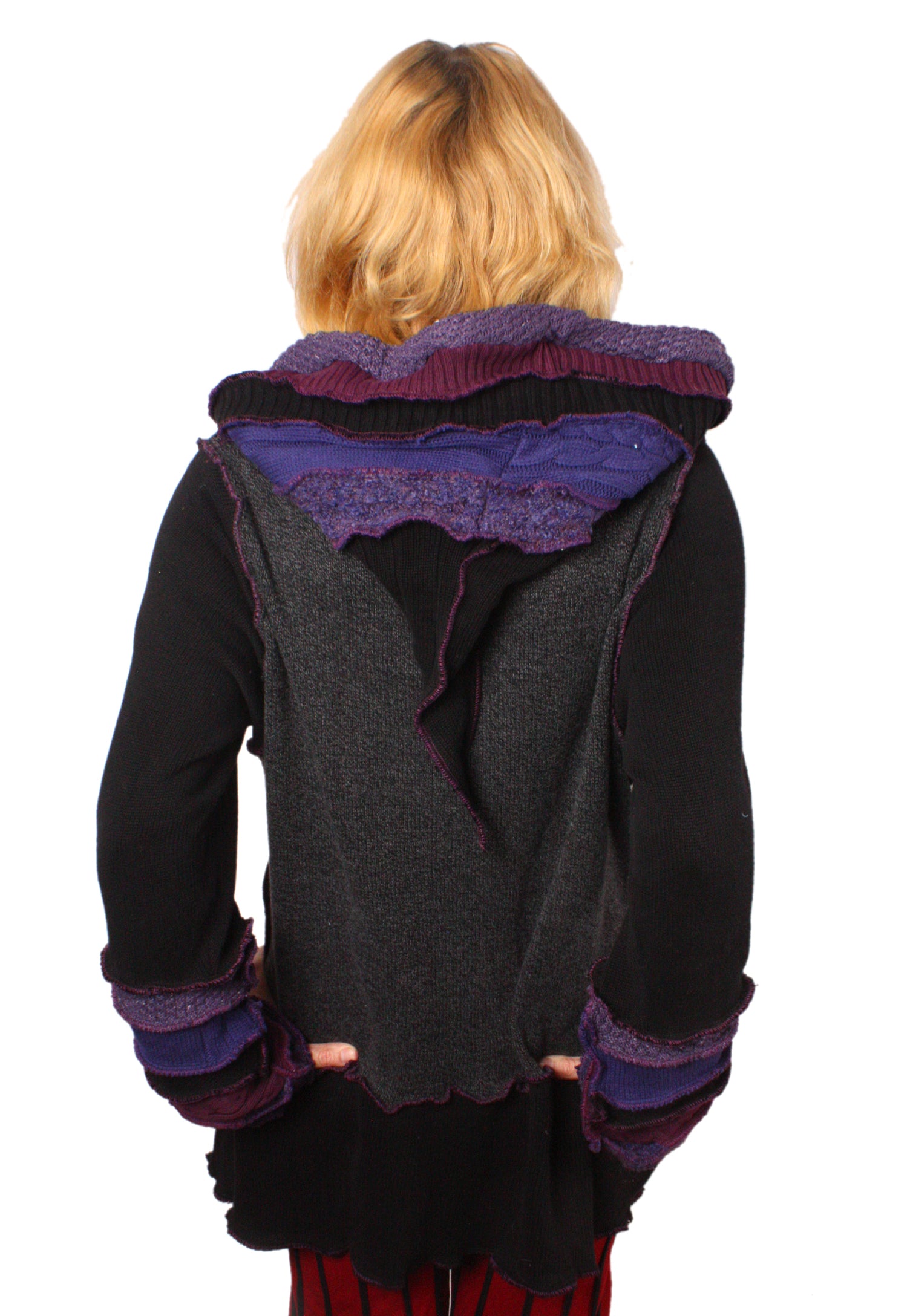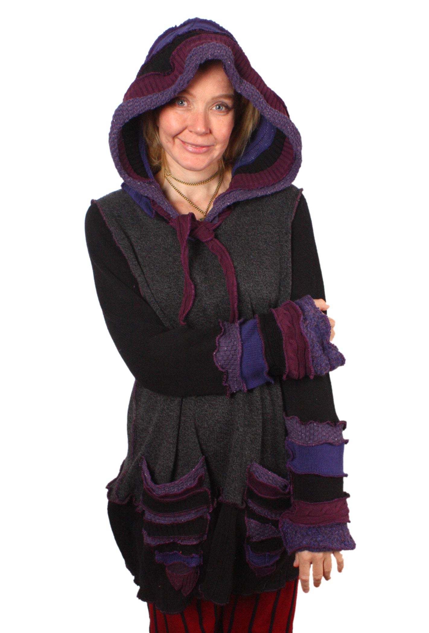 Clammy Azalea! is a glorious tunic of grey and black with warm purply accents and subtle textures. Very low-wool, almost wool free.