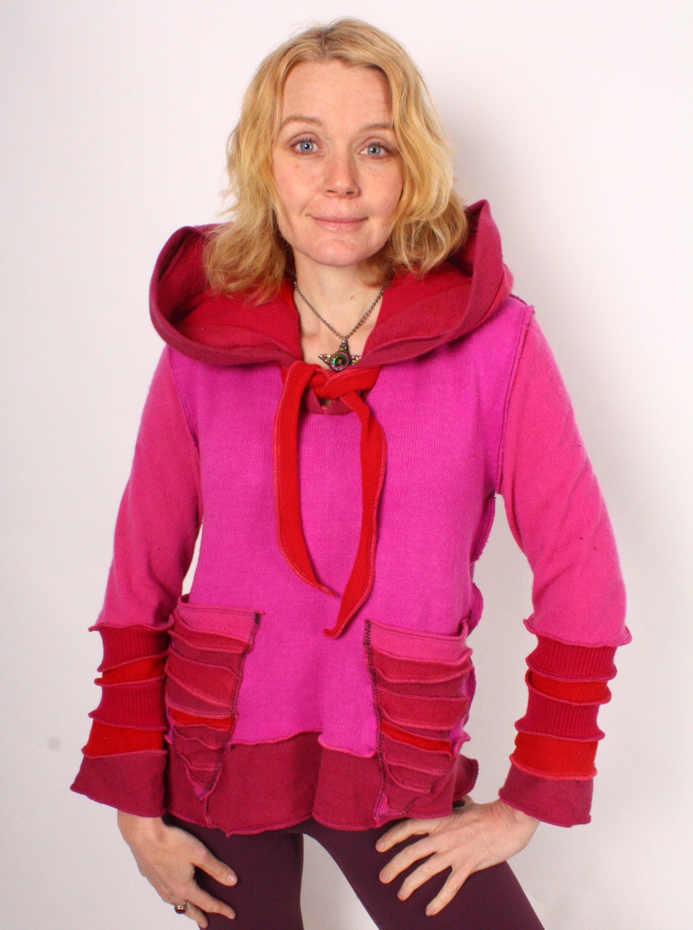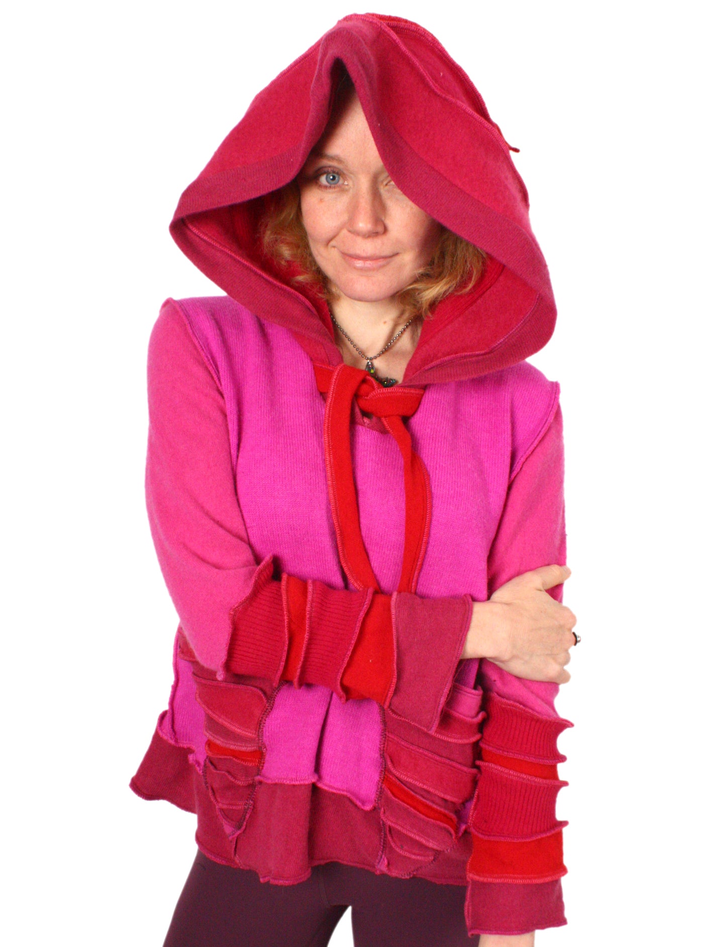 Each Katwise sweater is one-of-a-kind, sewn by me in my attic. They are perfectly imperfect, sometimes borderline wonky. They are all upcycled from sweaters I find in my vast thrift shopping expeditions. There is a huge variety in the texture and stretchiness of these knits, so no two are ever quite alike.