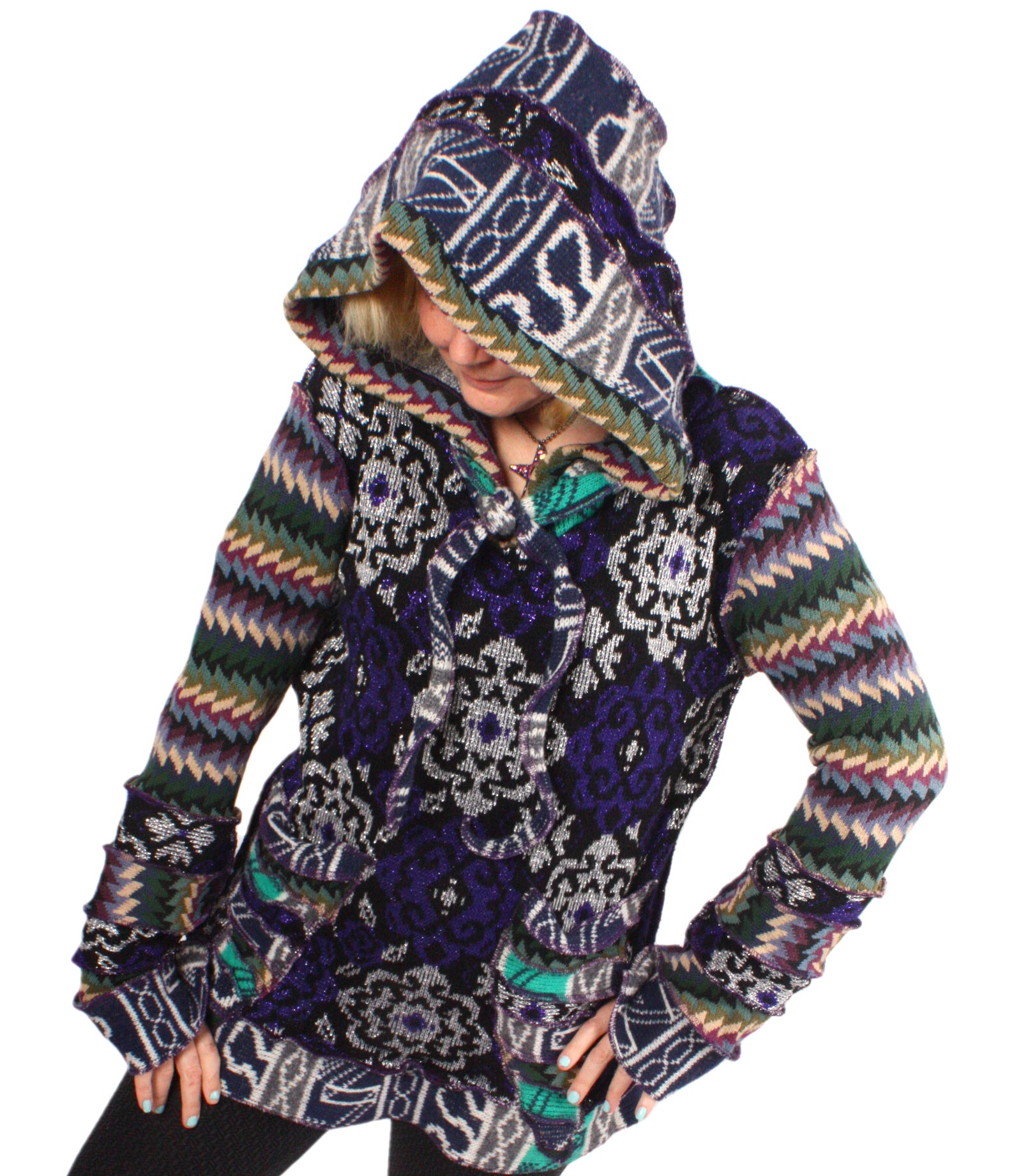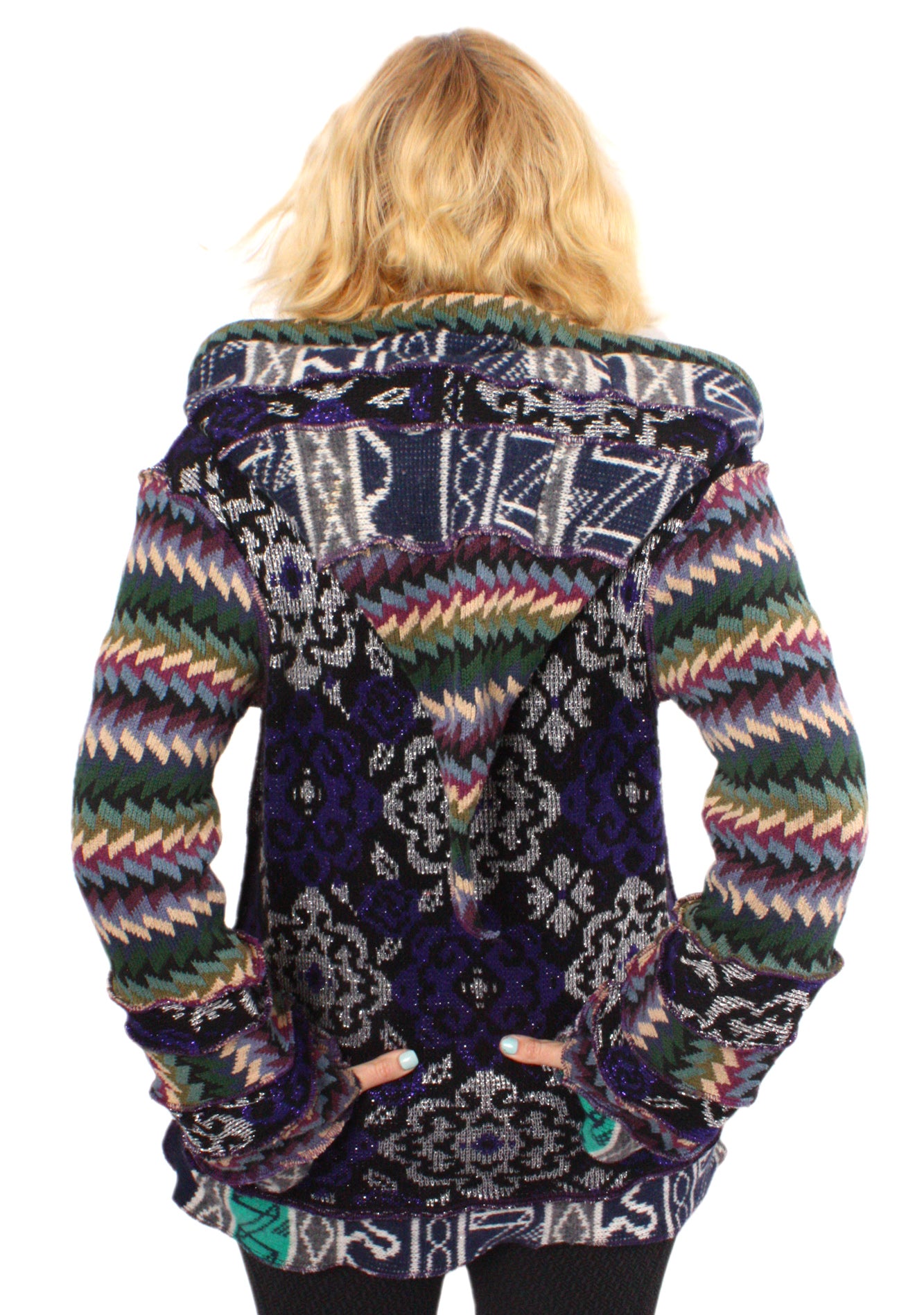 Eat The Music is a cacophony of joyous sparkle and clashy patterns. It's a combination of cotton, wool, and 80s mystery knit.