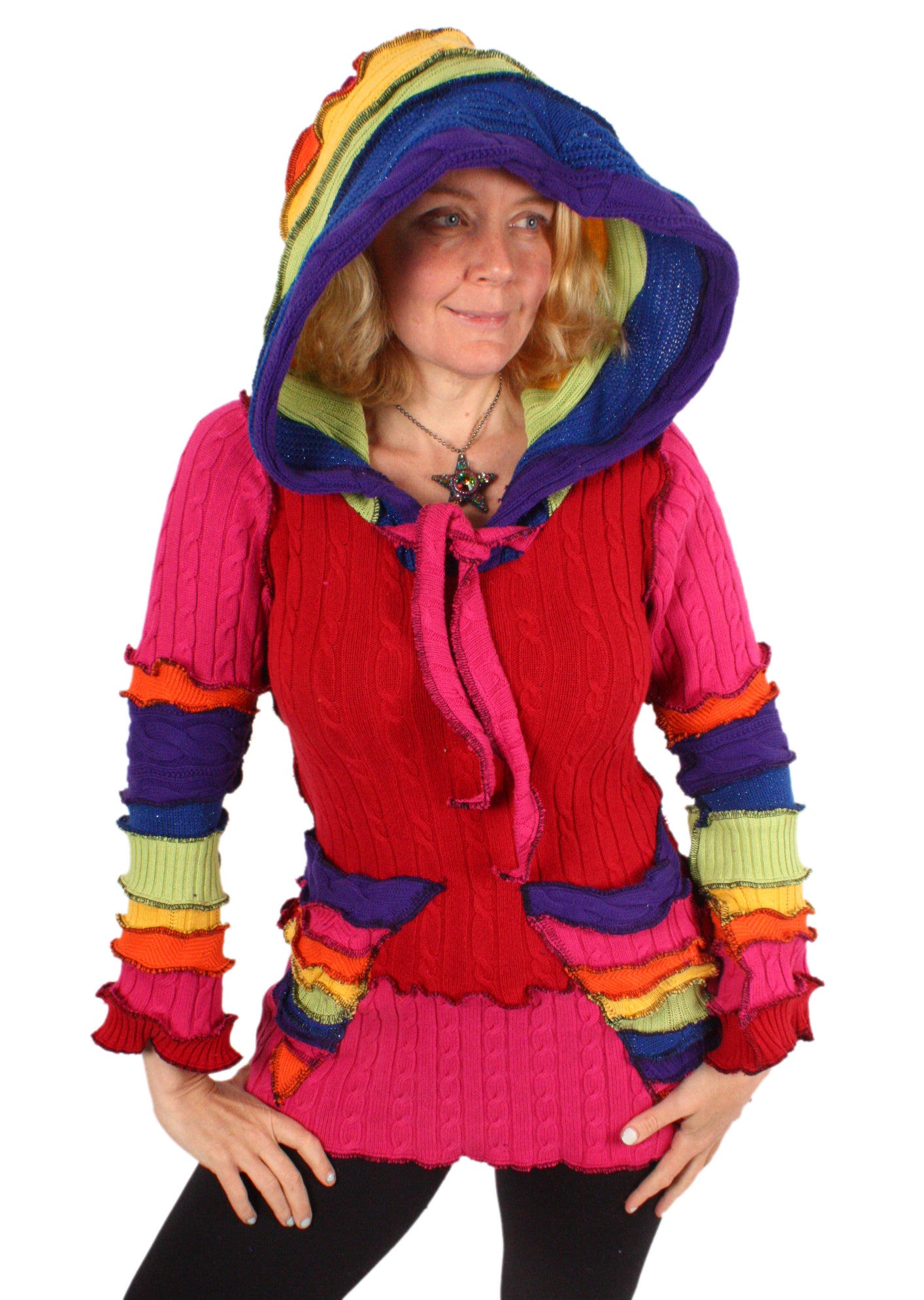 A Woman Rebels is the ultimate rainbowlicious pullover in 100% cotton with a teensy bit of sparkle.