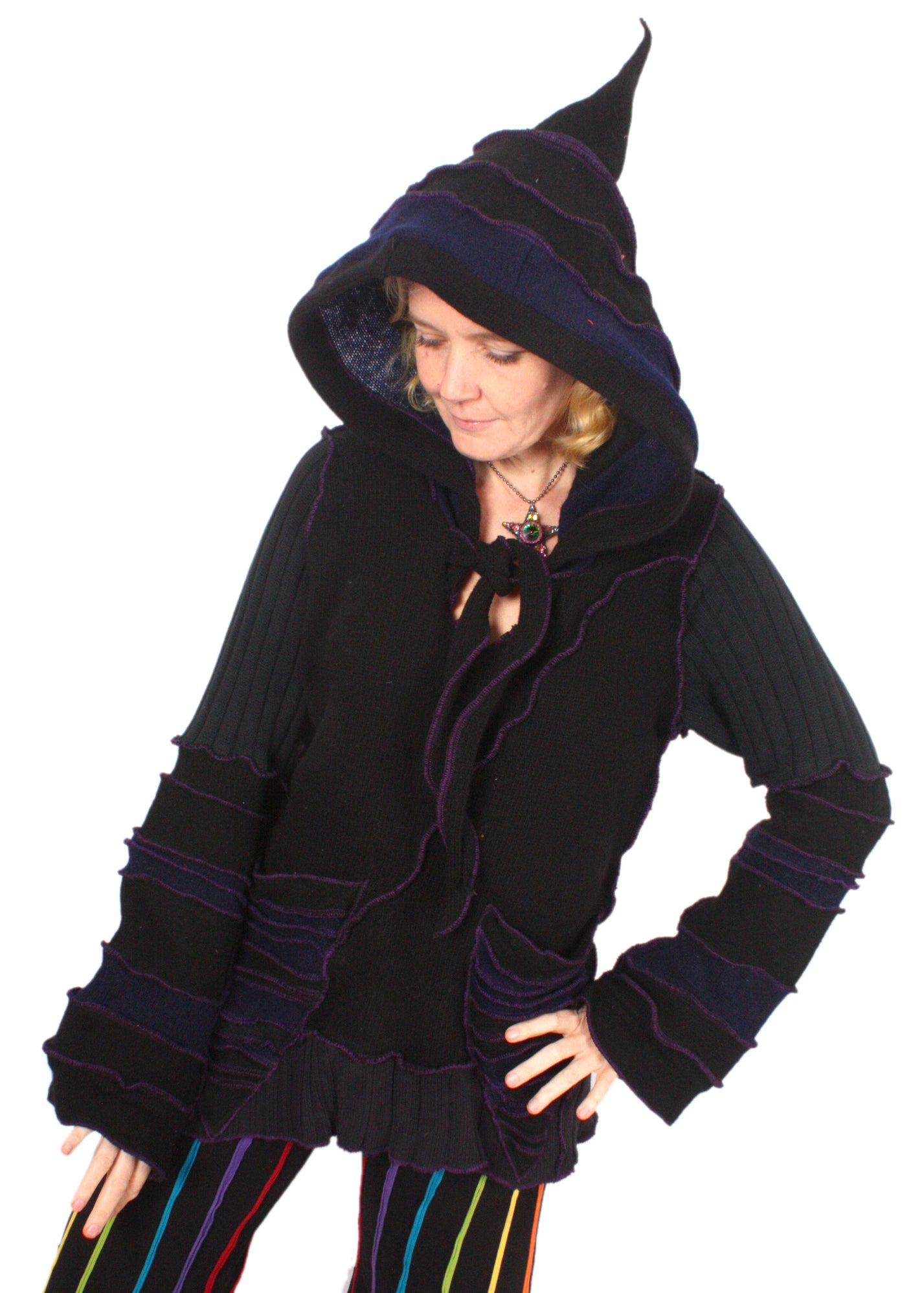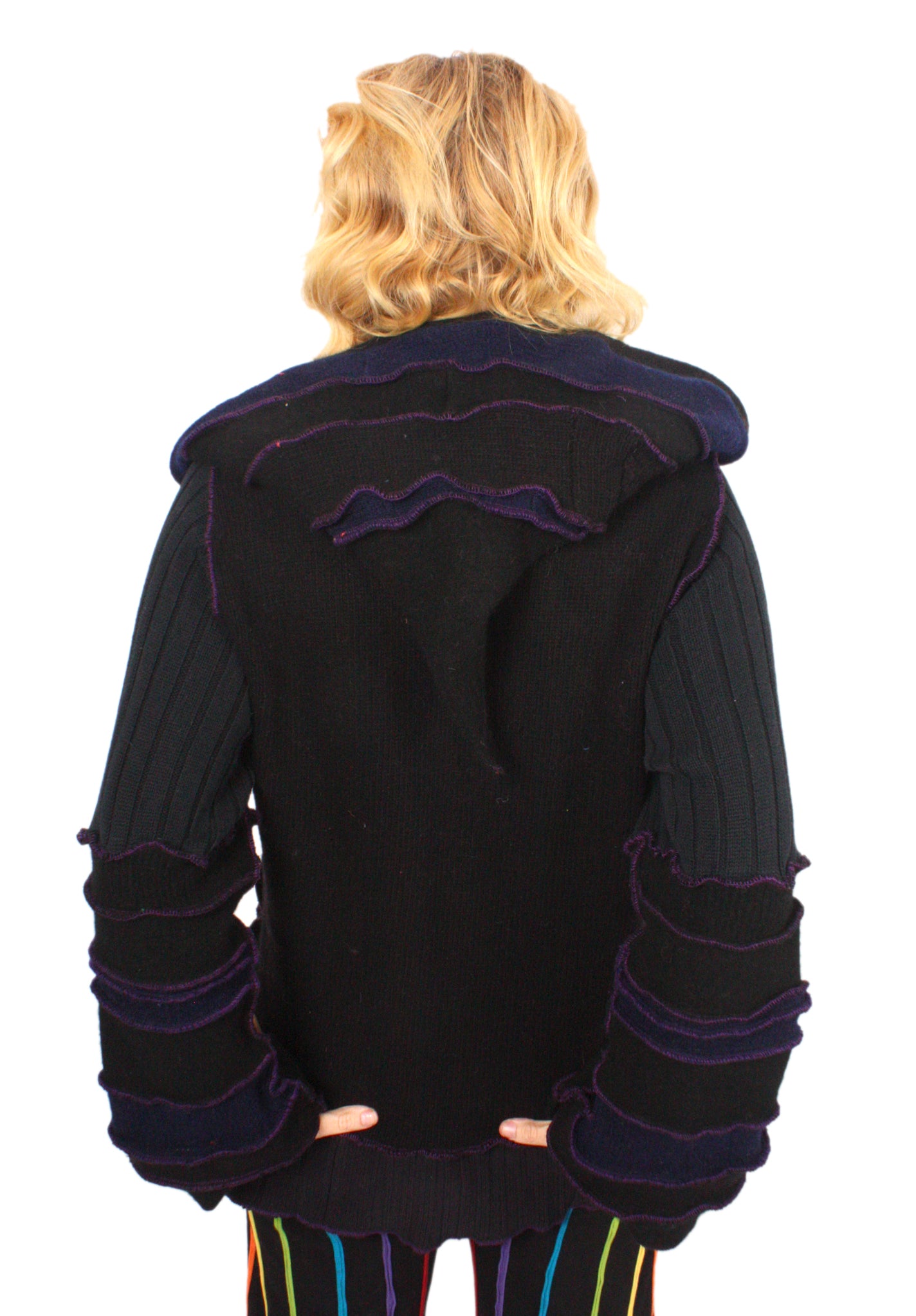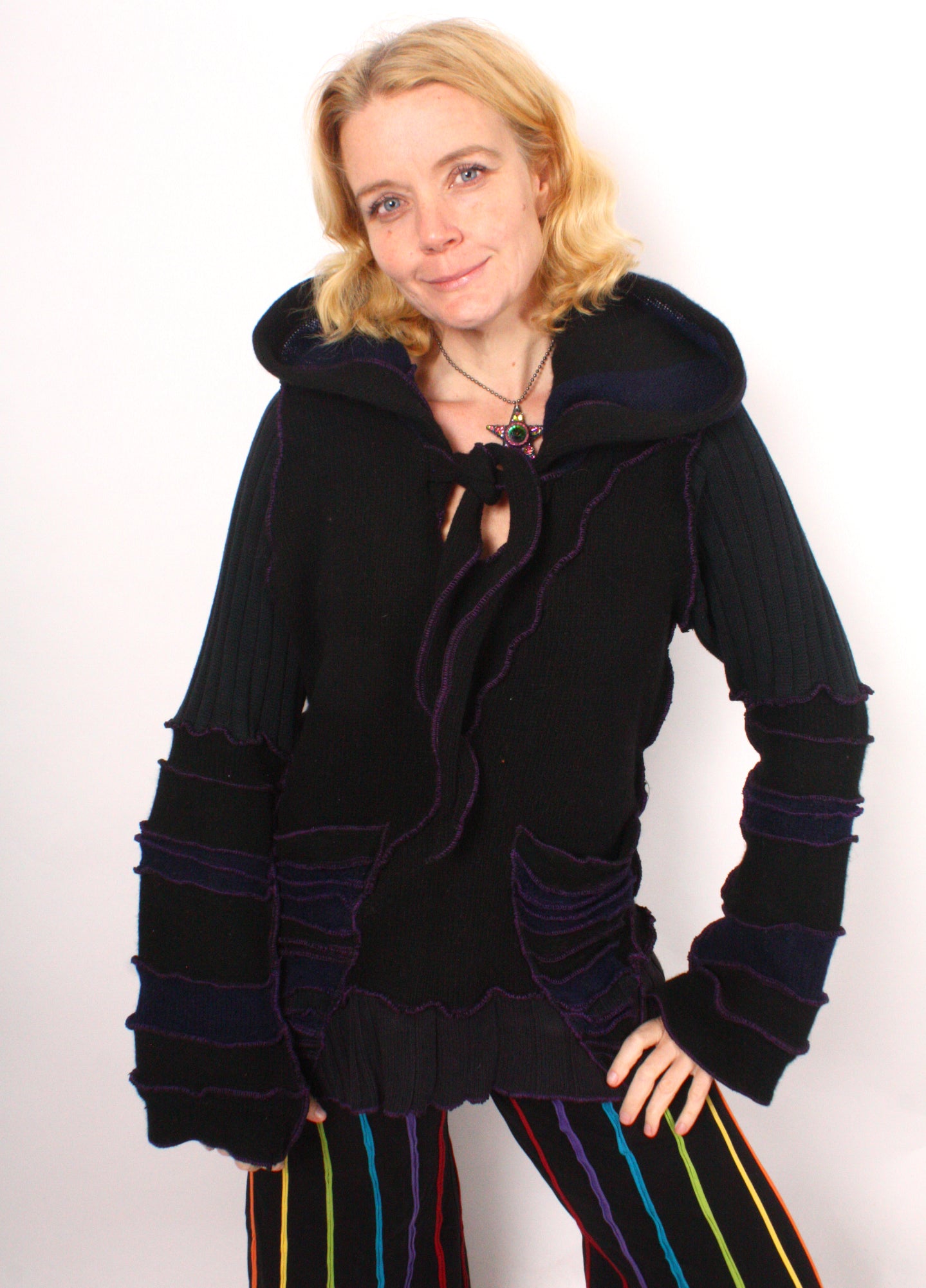Each Katwise sweater is one-of-a-kind, sewn by me in my attic. They are perfectly imperfect, sometimes borderline wonky. They are all upcycled from sweaters I find in my vast thrift shopping expeditions. There is a huge variety in the texture and stretchiness of these knits, so no two are ever quite alike.