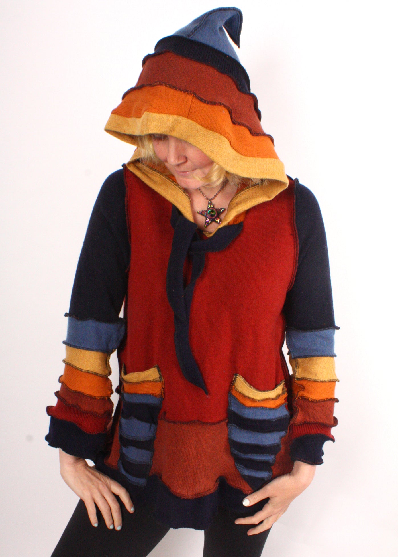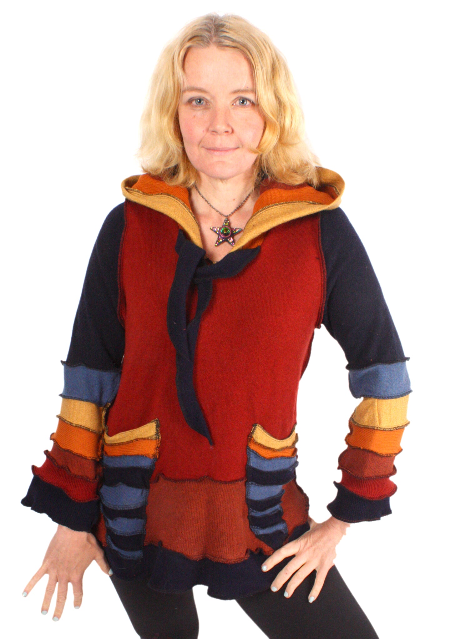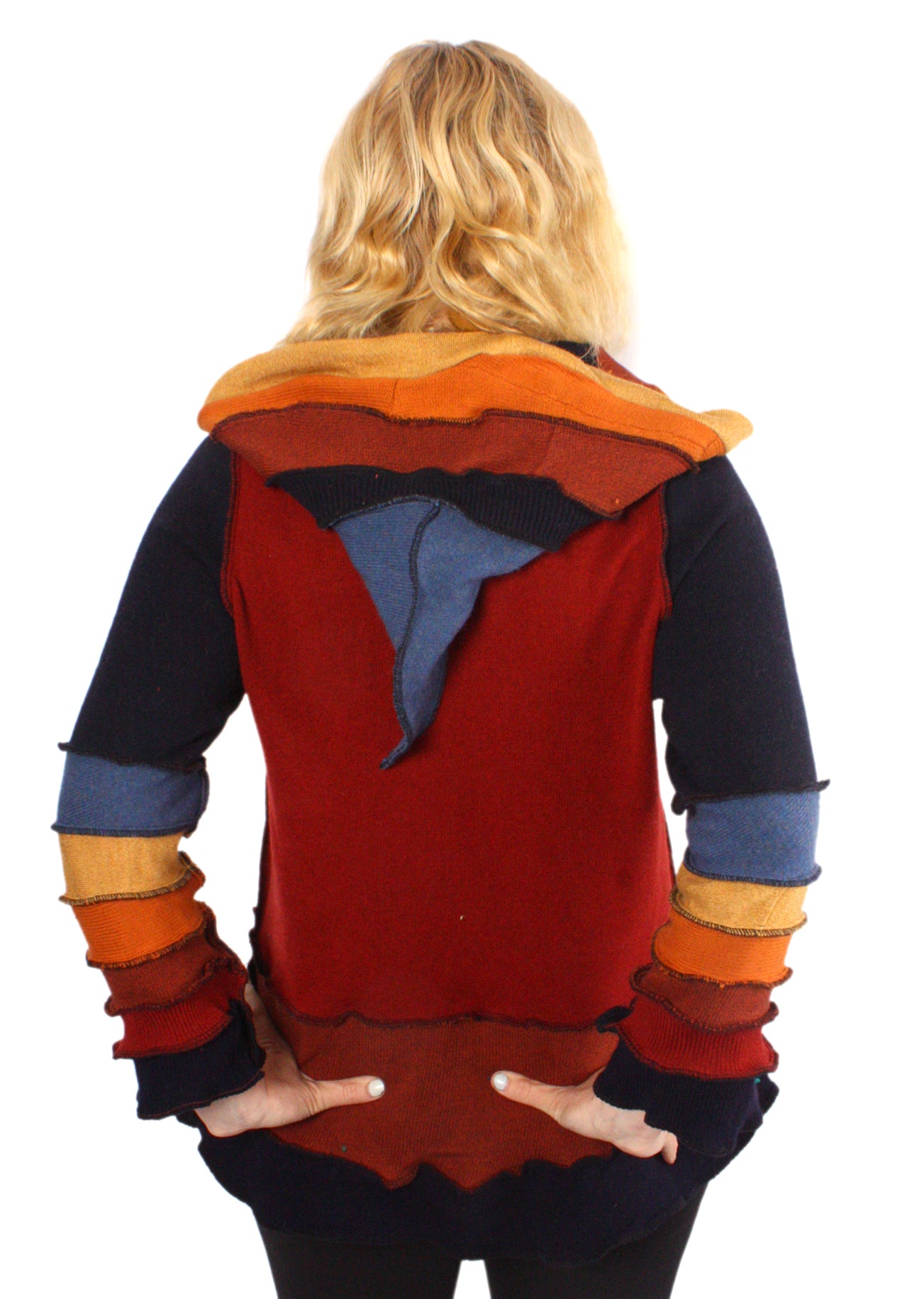 Each Katwise sweater is one-of-a-kind, sewn by me in my attic. They are perfectly imperfect, sometimes borderline wonky. They are all upcycled from sweaters I find in my vast thrift shopping expeditions. There is a huge variety in the texture and stretchiness of these knits, so no two are ever quite alike.