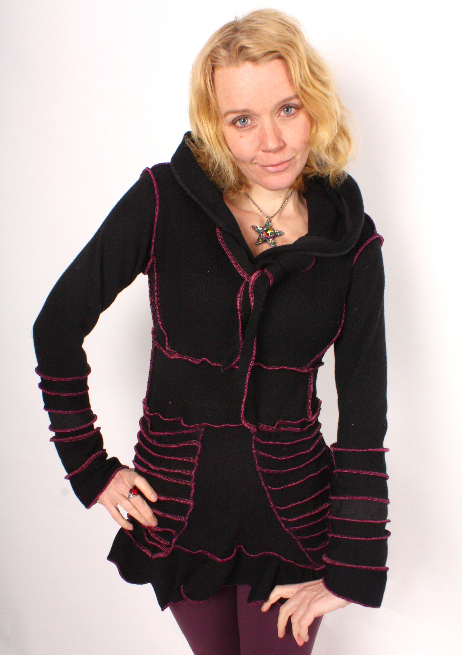 Each Katwise sweater is one-of-a-kind, sewn by me in my attic. They are perfectly imperfect, sometimes borderline wonky. They are all upcycled from sweaters I find in my vast thrift shopping expeditions. There is a huge variety in the texture and stretchiness of these knits, so no two are ever quite alike.