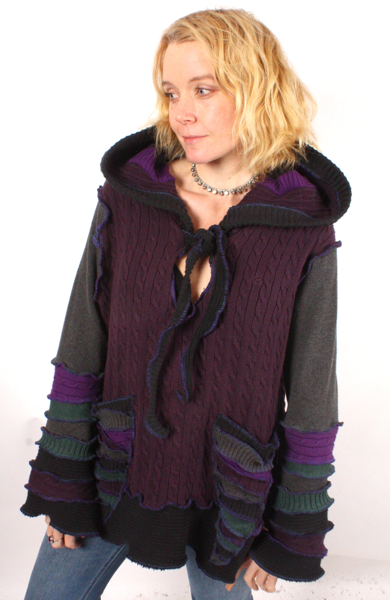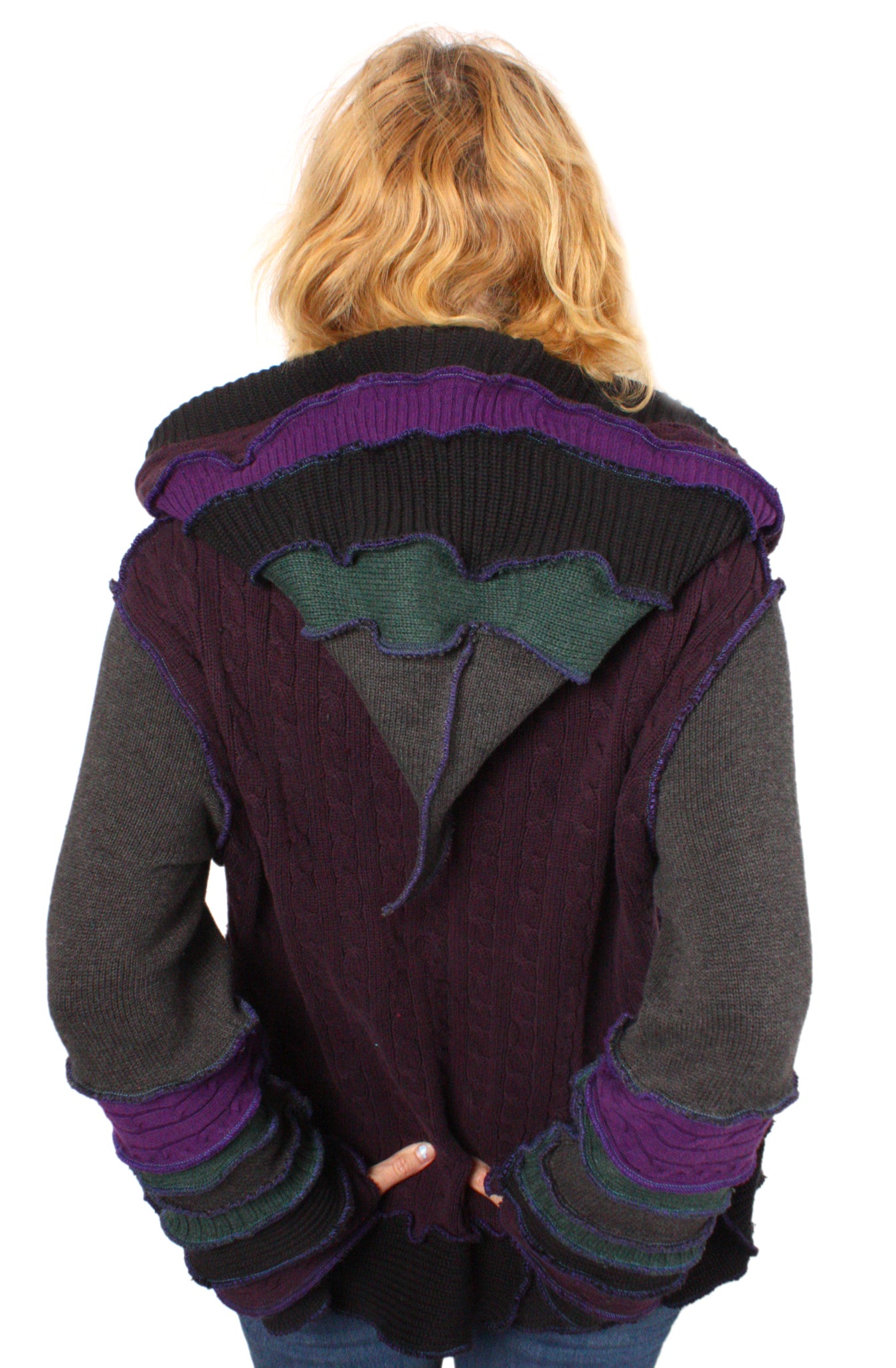 Each Katwise sweater is one-of-a-kind, sewn by me in my attic. They are perfectly imperfect, sometimes borderline wonky. They are all upcycled from sweaters I find in my vast thrift shopping expeditions. There is a huge variety in the texture and stretchiness of these knits, so no two are ever quite alike.