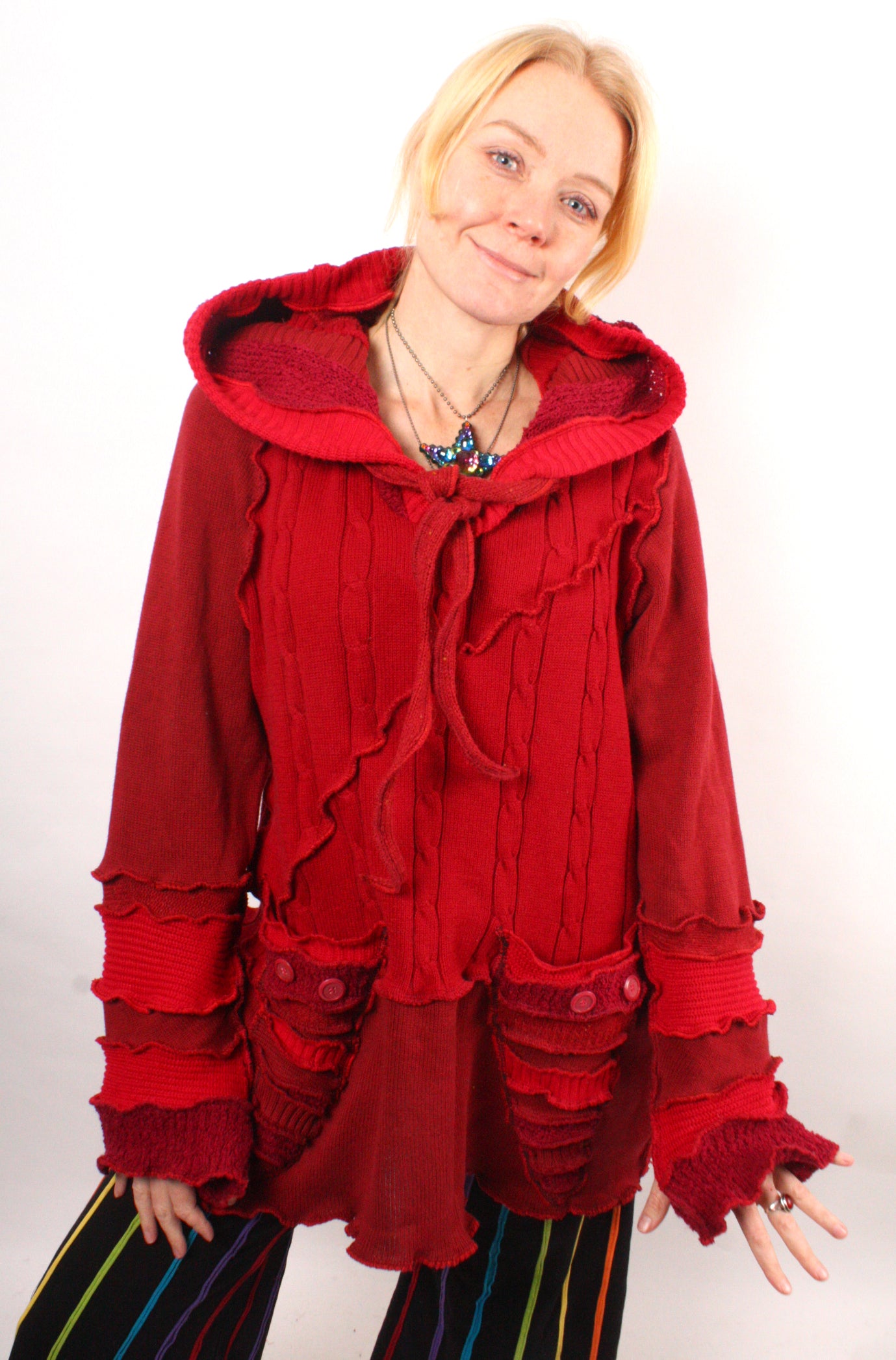 Each Katwise sweater is one-of-a-kind, sewn by me in my attic. They are perfectly imperfect, sometimes borderline wonky. They are all upcycled from sweaters I find in my vast thrift shopping expeditions. There is a huge variety in the texture and stretchiness of these knits, so no two are ever quite alike.