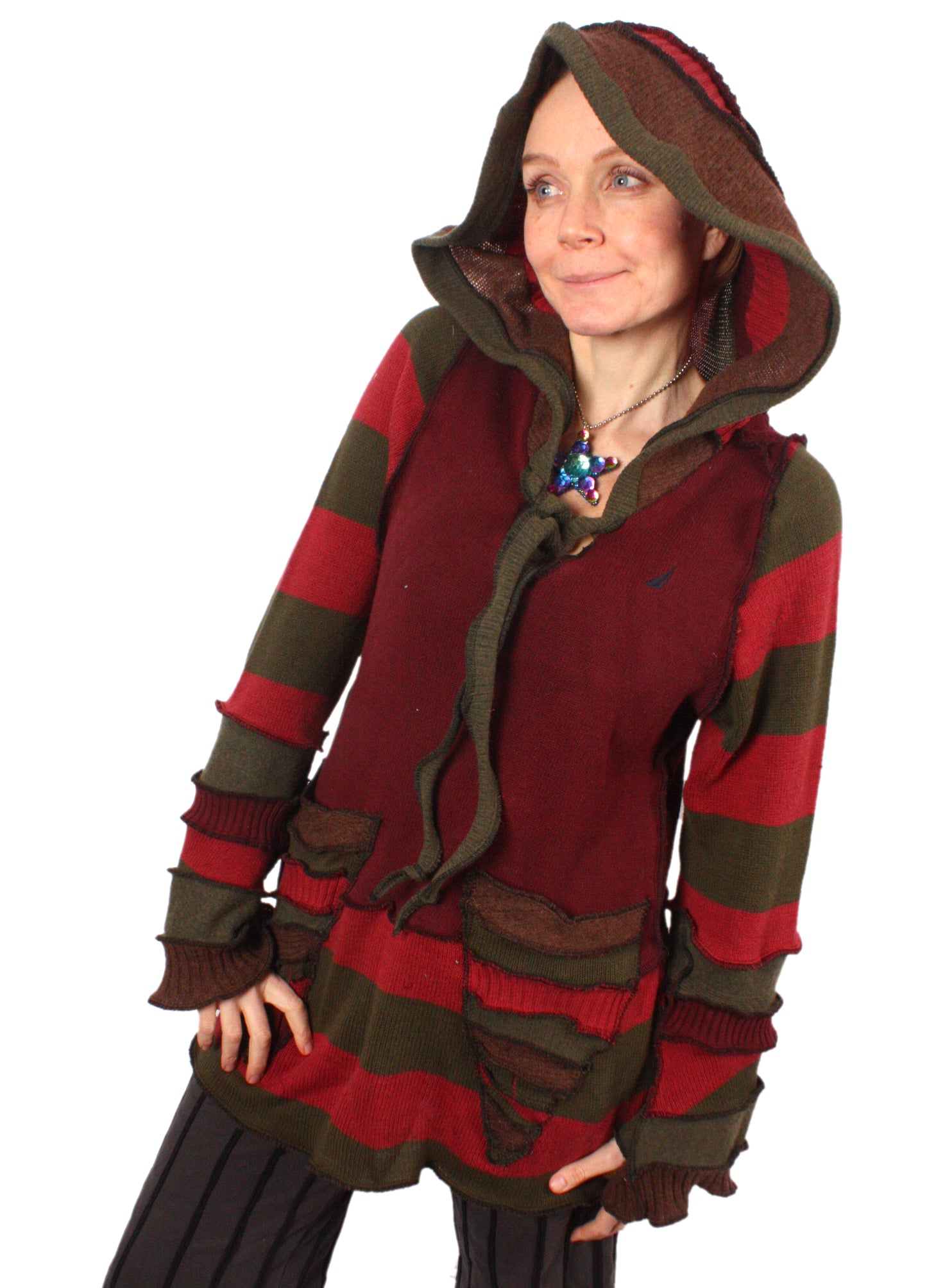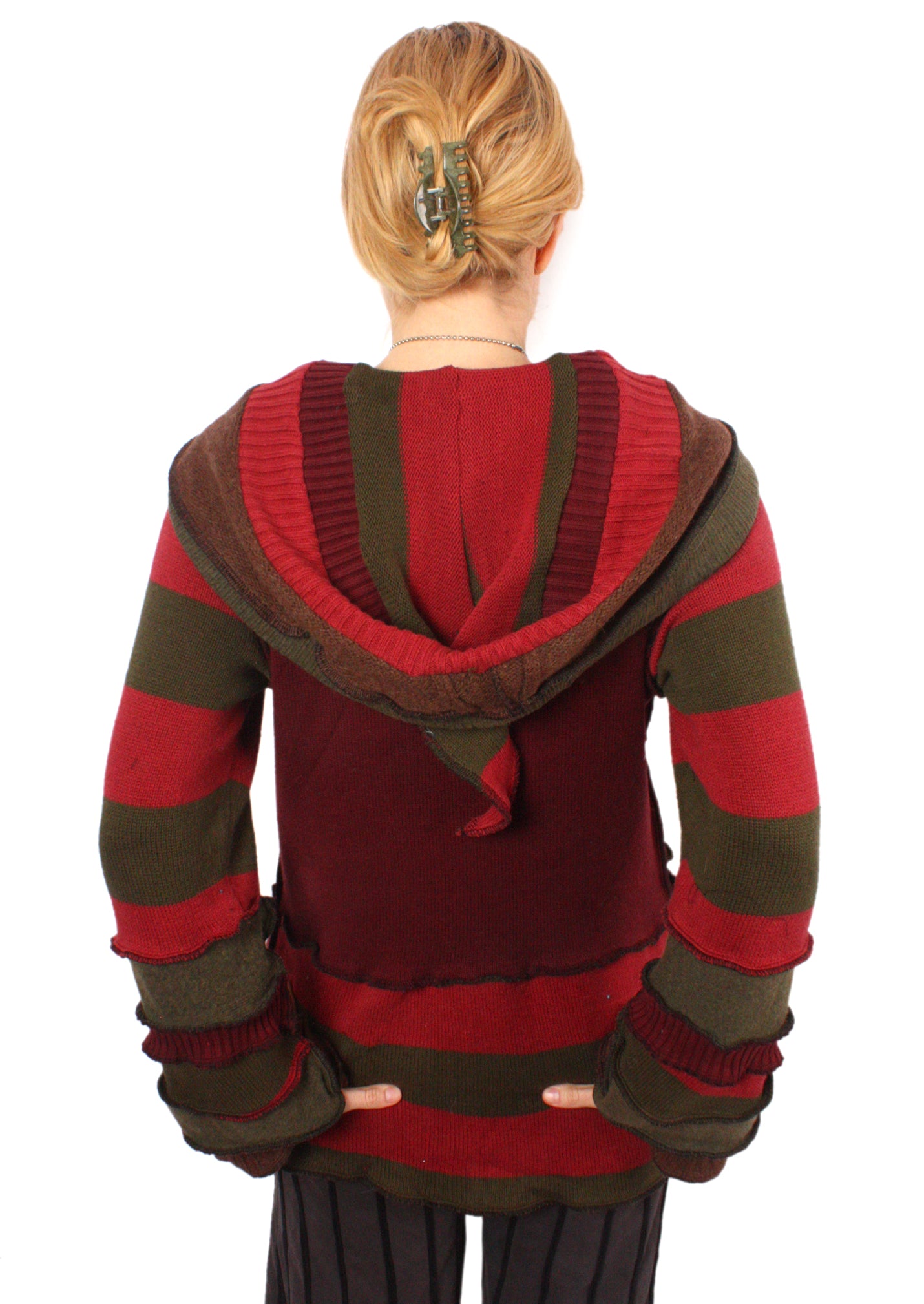 Rebelión is a comfy cotton pullover with Freddy-Kruger-striped arms. It's mostly cotton with a bit of wool.