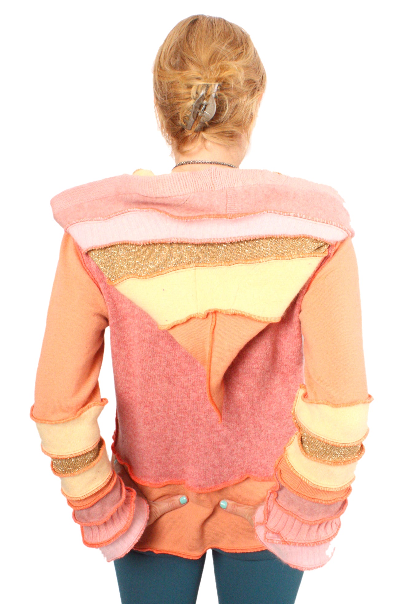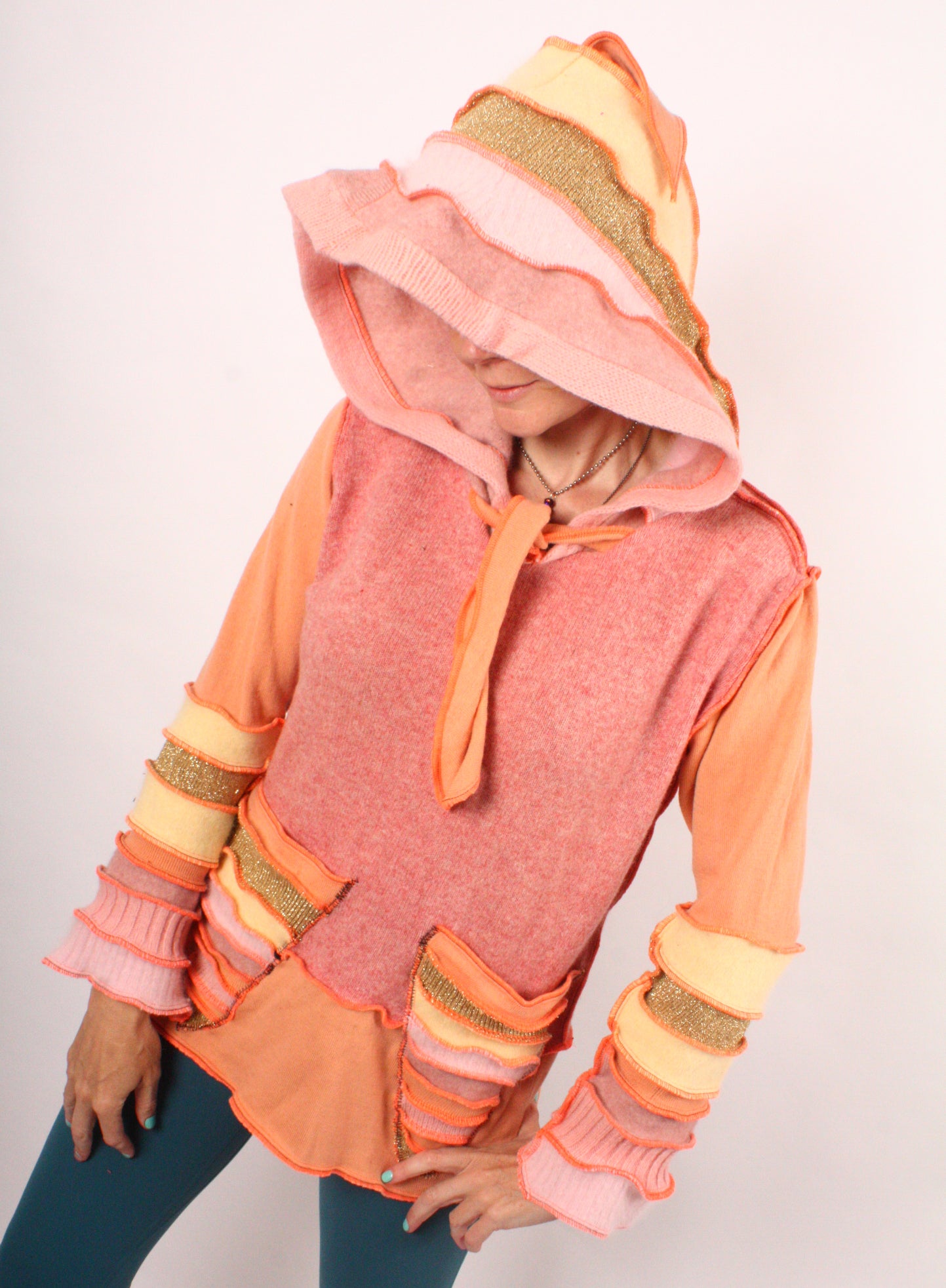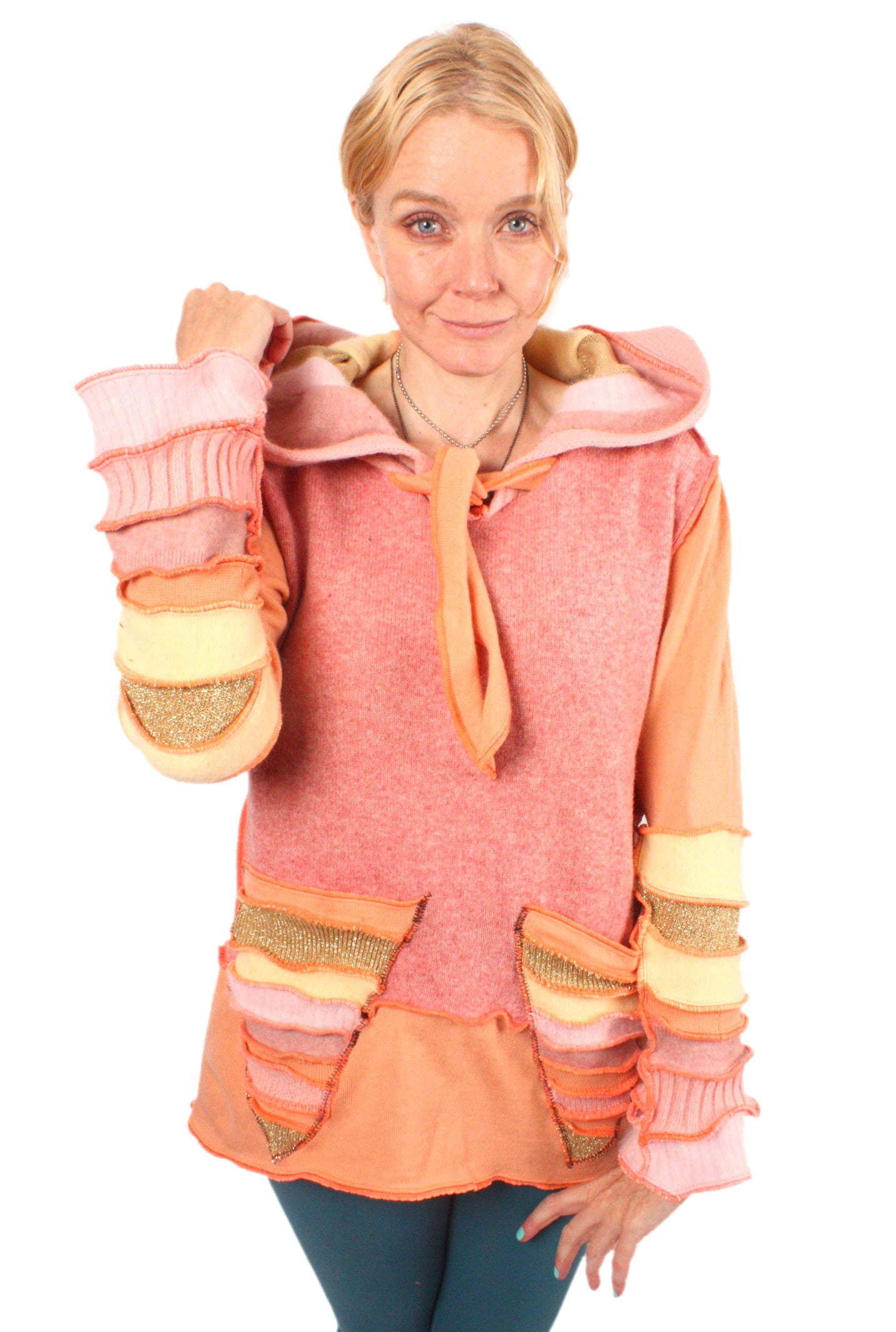 Each Katwise sweater is one-of-a-kind, sewn by me in my attic. They are perfectly imperfect, sometimes borderline wonky. They are all upcycled from sweaters I find in my vast thrift shopping expeditions. There is a huge variety in the texture and stretchiness of these knits, so no two are ever quite alike.