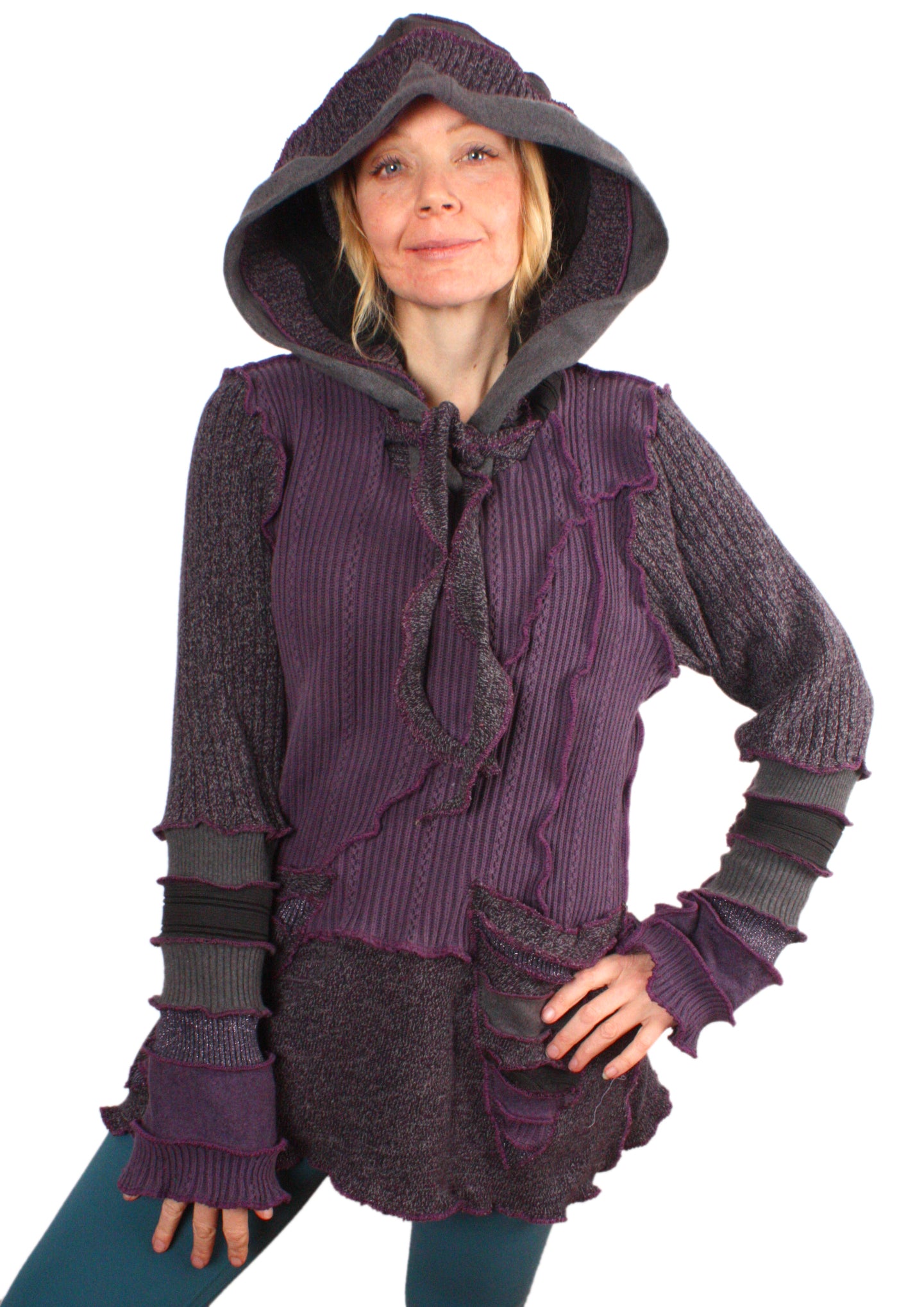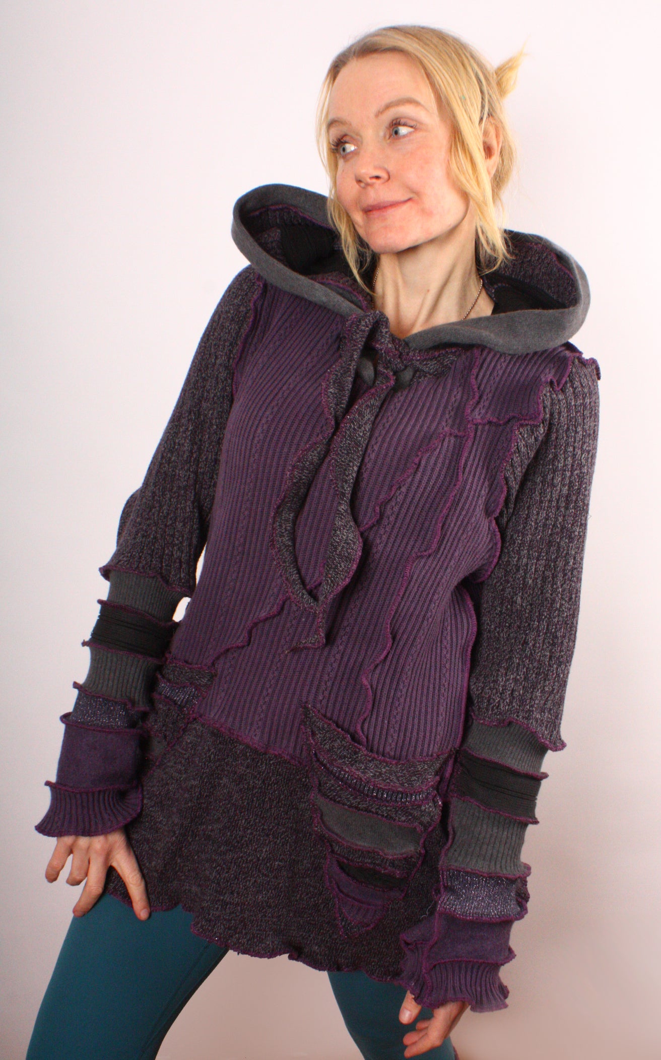 A Real Indication is a purpley grey tunic with mottled speckles and lavender shimmer. It's mostly cotton with a touch of wool.