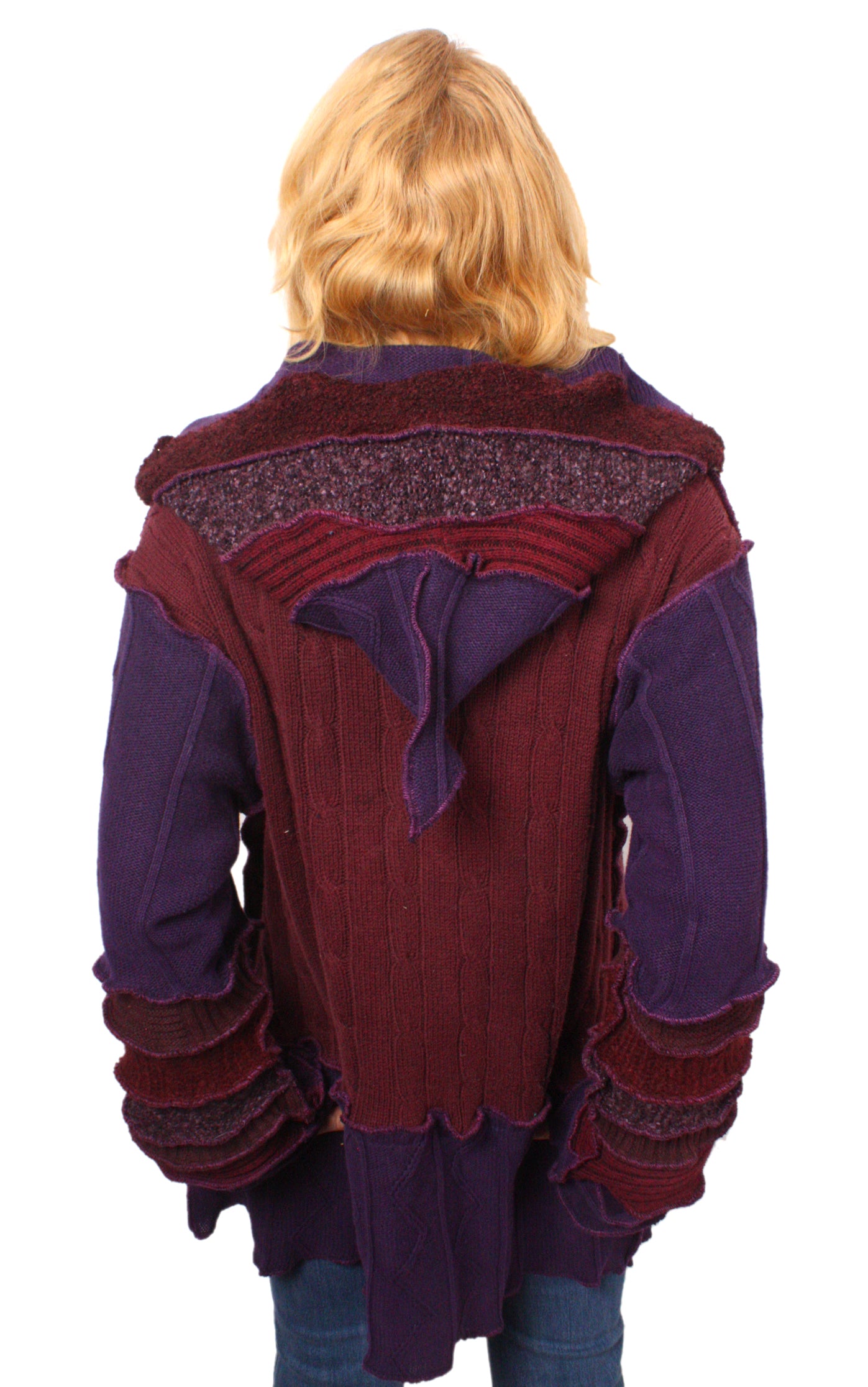 Each Katwise sweater is one-of-a-kind, sewn by me in my attic. They are perfectly imperfect, sometimes borderline wonky. They are all upcycled from sweaters I find in my vast thrift shopping expeditions. There is a huge variety in the texture and stretchiness of these knits, so no two are ever quite alike.