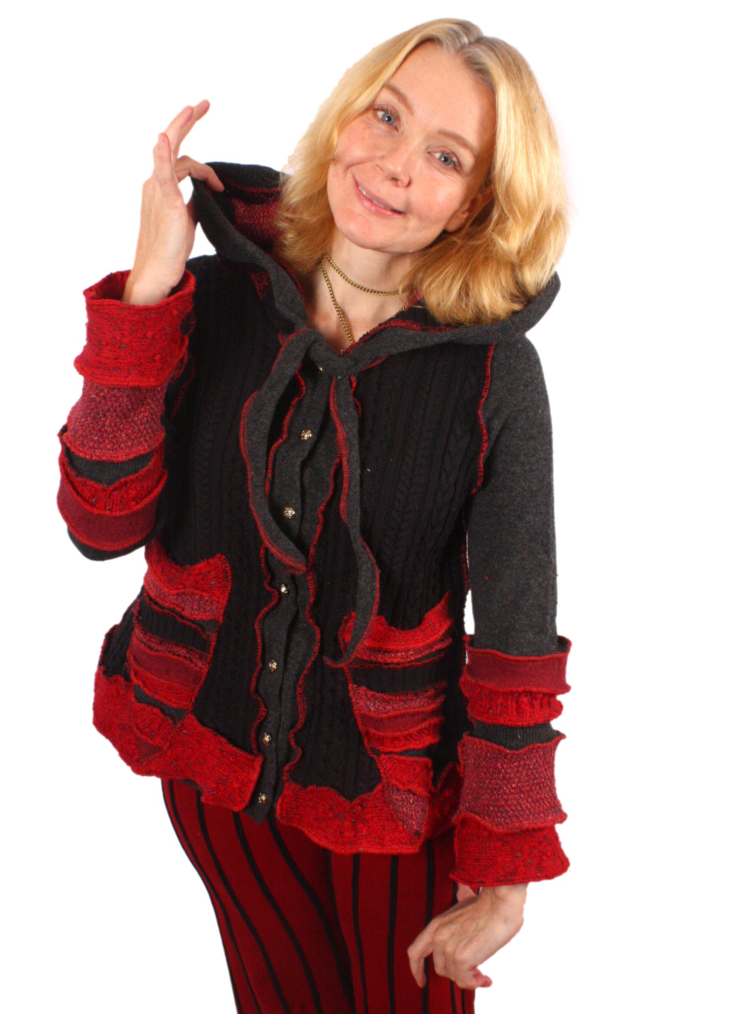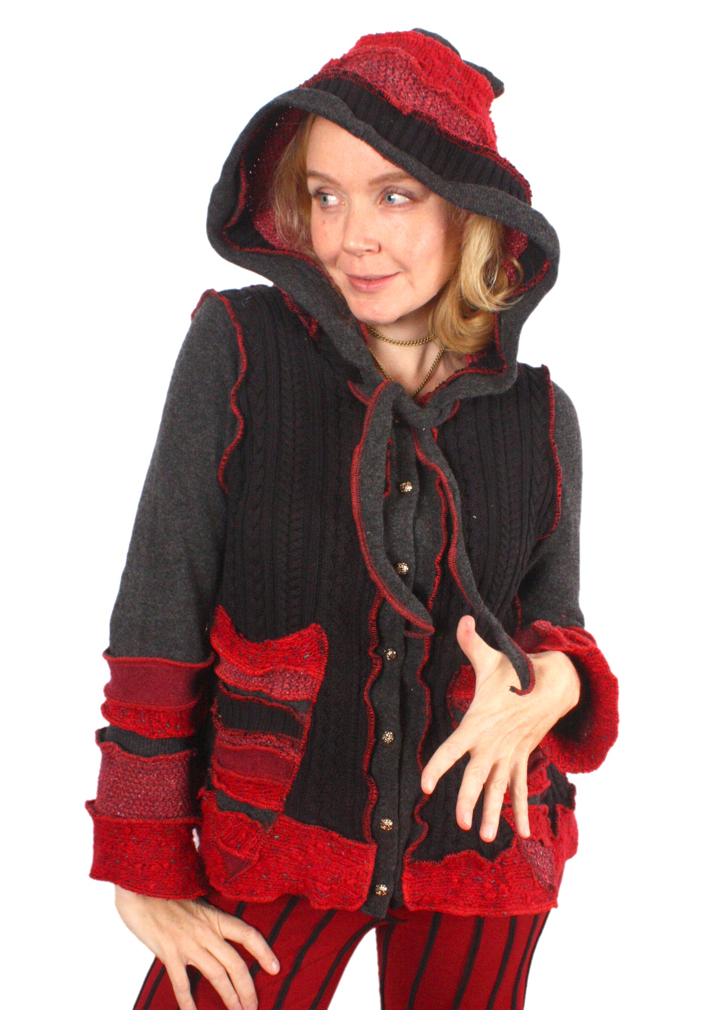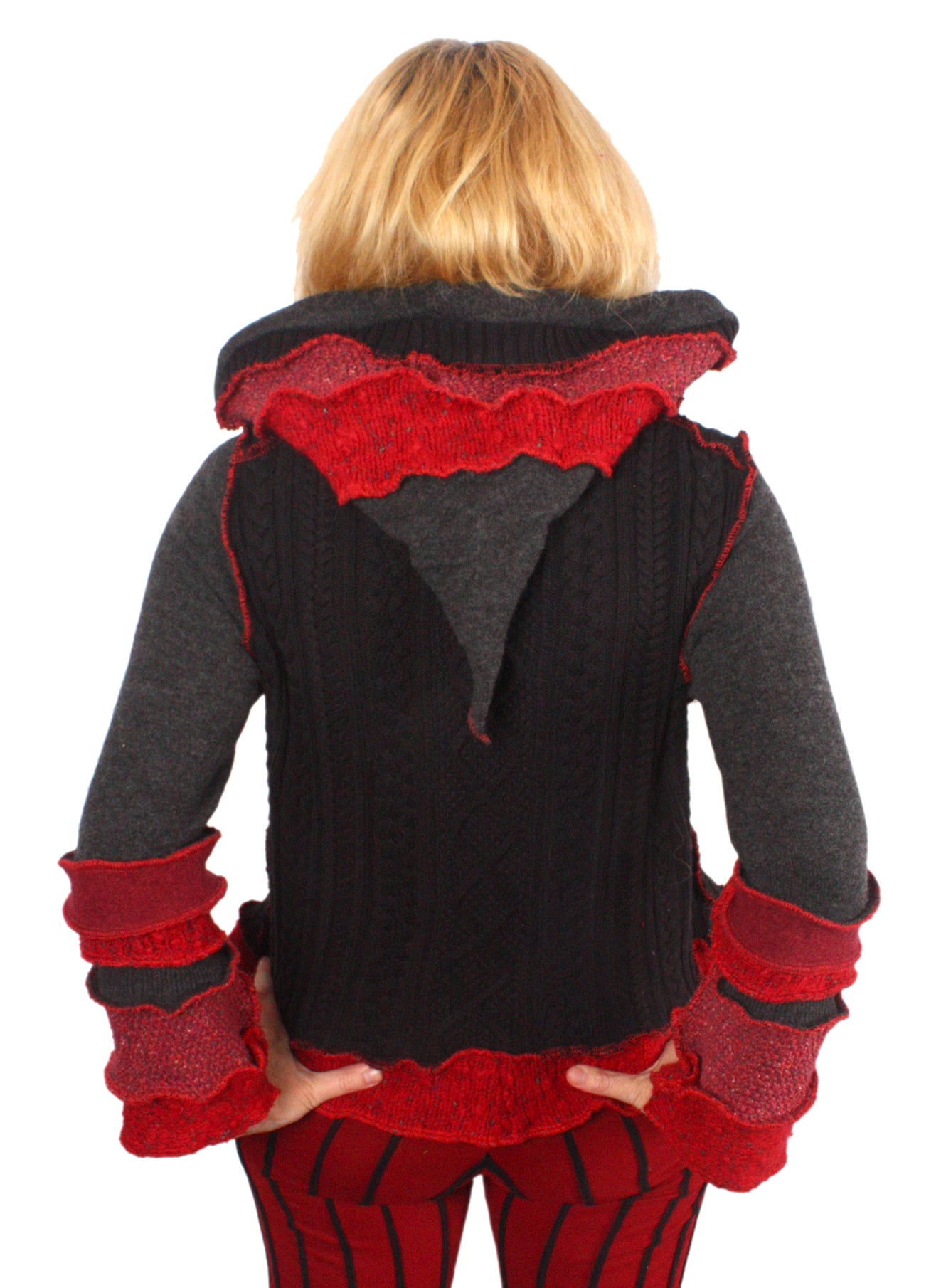 Each Katwise sweater is one-of-a-kind, sewn by me in my attic. They are perfectly imperfect, sometimes borderline wonky. They are all upcycled from sweaters I find in my vast thrift shopping expeditions. There is a huge variety in the texture and stretchiness of these knits, so no two are ever quite alike.